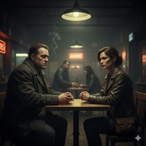 Se quedaron en silencio. El humo del cigarrillo de él se mezcló con el aire de ella. El bar seguía siendo un antro desagradable, pero para ellos, se había convertido en el único lugar sagrado en kilómetros a la redonda.