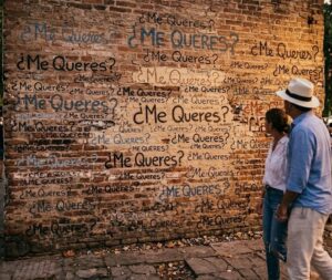 Me queres? Así simplemente.El verdadero peligro no es la pared rugosa de ladrillos donde se ha escrito,es la consecuencia o resultado de carácter grave que tiene la pregunta.Su significado real queda flotando en el ambiente, en un estado de desequibrio con una capacidad de cambiar la forma de la interpretacion,cruza las fronteras del pensamiento , no siempre viaja libre; a veces se esconde en el vacío hasta que alguien la escucha, no es una respuesta, es el coraje de seguir haciendo la pregunta más sencilla del mundo que nos lleva a reconocer nuestra propia necesidad de amor. Muy interesante esta segunda parte. Gracias. Saludos.